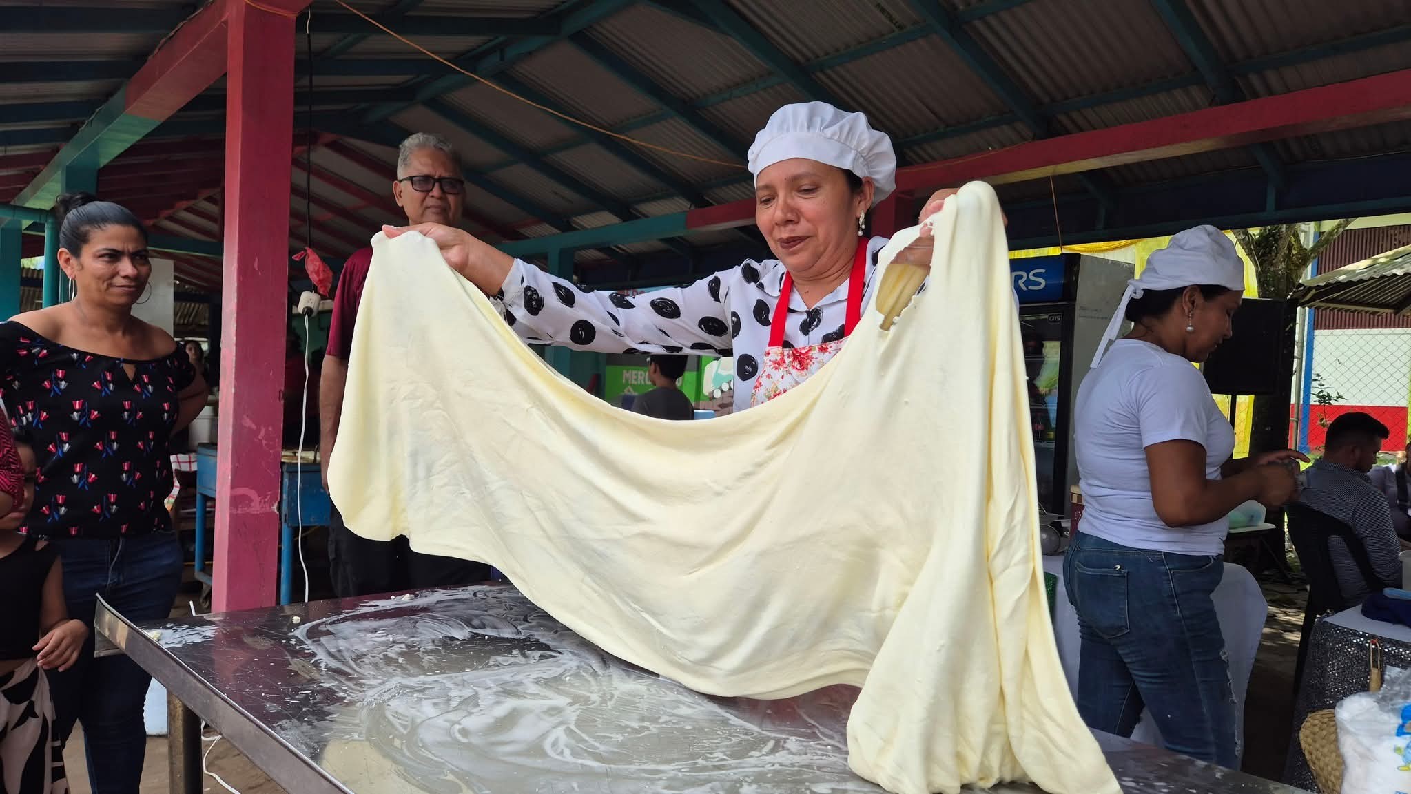 Durante el evento se ofreció un taller donde protagonistas de Muelle de los Bueyes y Nueva Guinea enseñaron paso a paso cómo se elabora el quesillo, compartiendo con las familias la manera artesanal de preparar este tradicional platillo.
