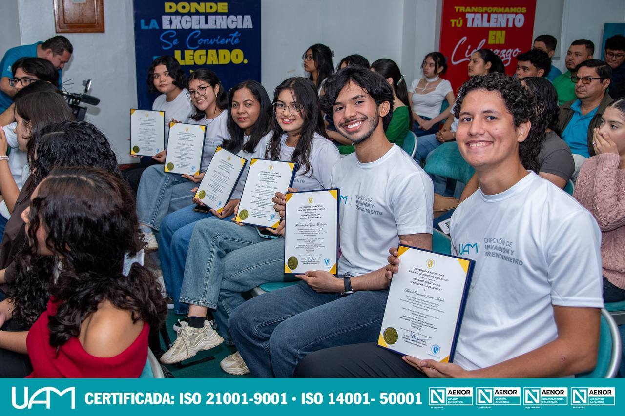 Recibieron reconocimiento los integrantes del equipo: Ashley Nicole López, Grethel Michelle Hernández, Janice Scarlette Cruz, Ivania Javiera Pineda, Fernando José Tijerino, Jesy Nicole González y André Enmanuel Joiner, todos de la Facultad de Ingeniería y Arquitectura de esta casa de estudios superiores.